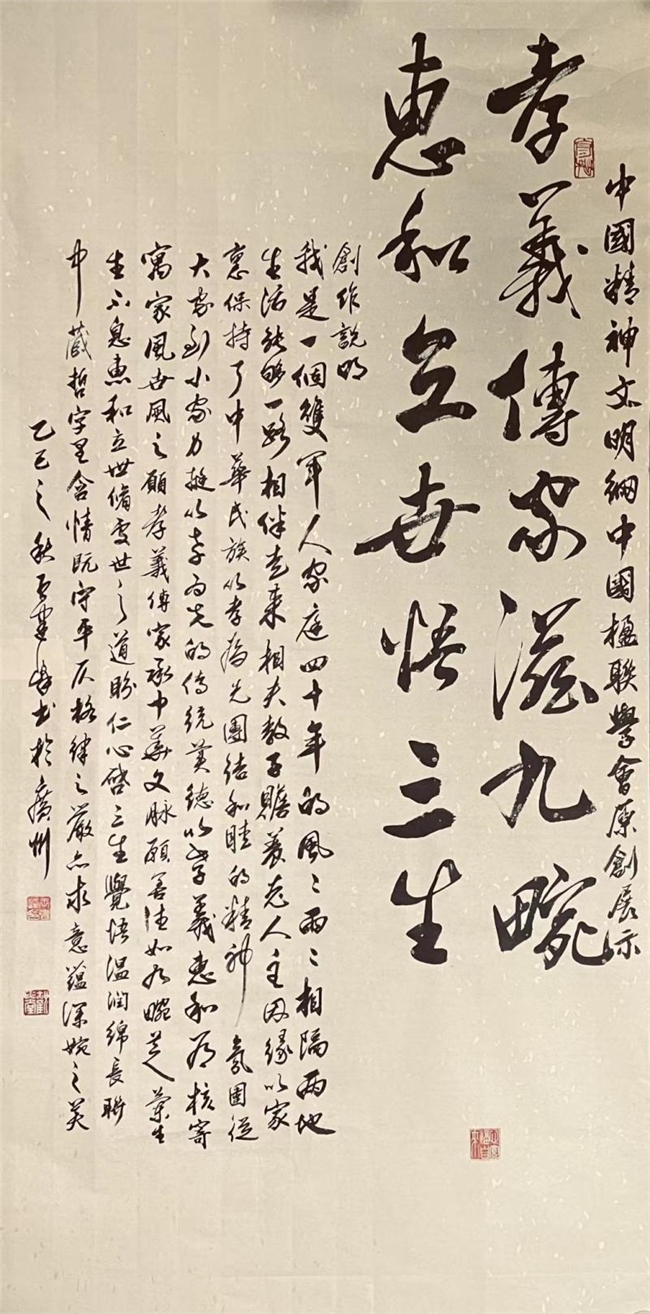 Work: The couplet "Filial Piety and Benevolence" was selected for publication in 2025 by China Civilization Network and China Couplet Society, measuring 138cm×69cm.