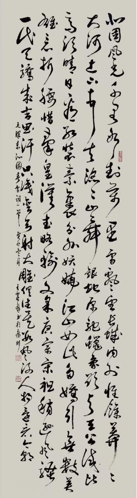 草书/毛泽东《沁园春•雪》2024年2月27日《书法报》第8期刋载。尺寸:240cm×68cm.