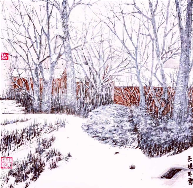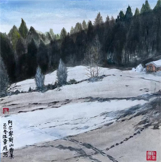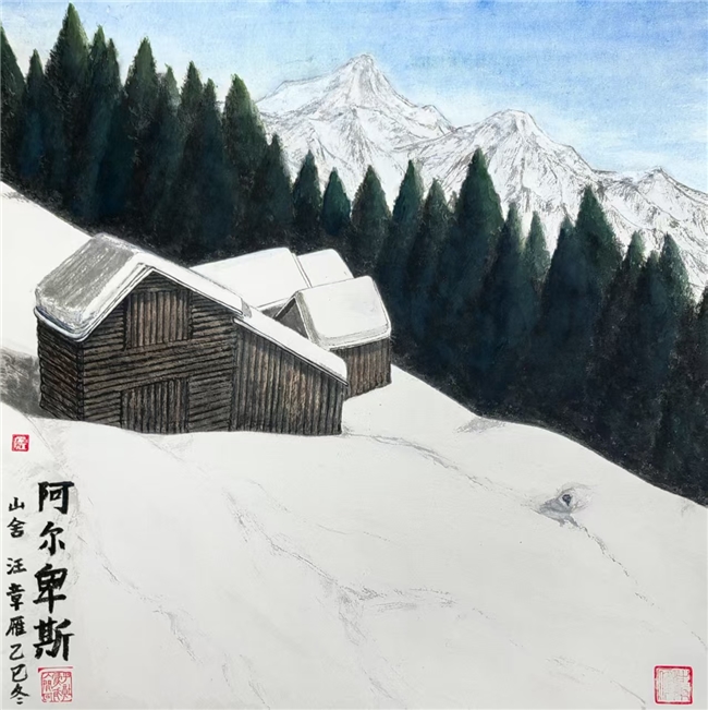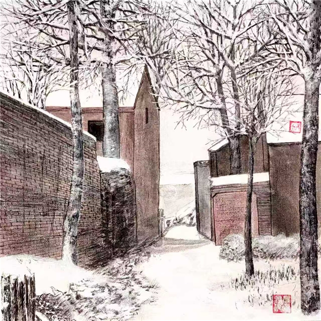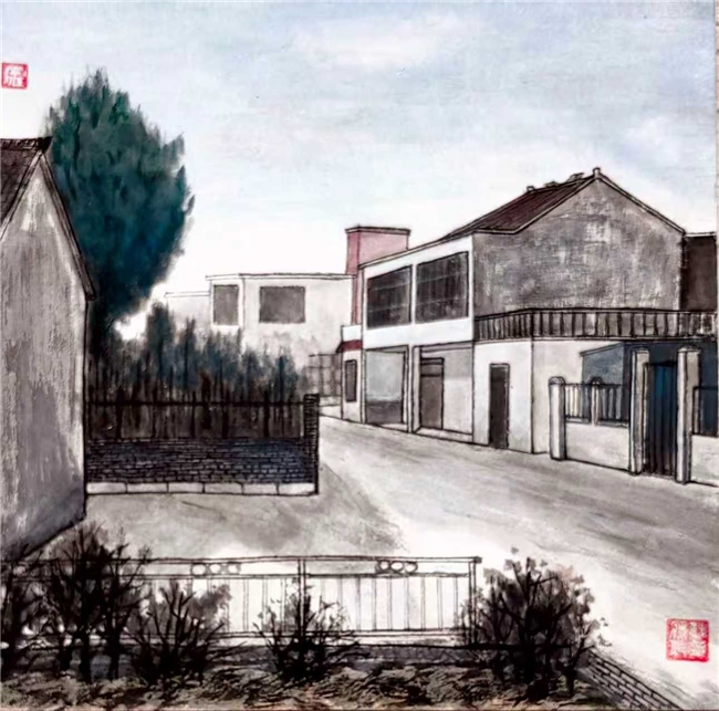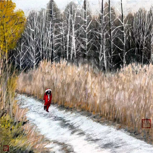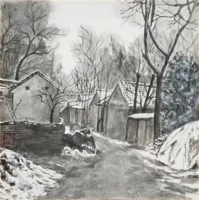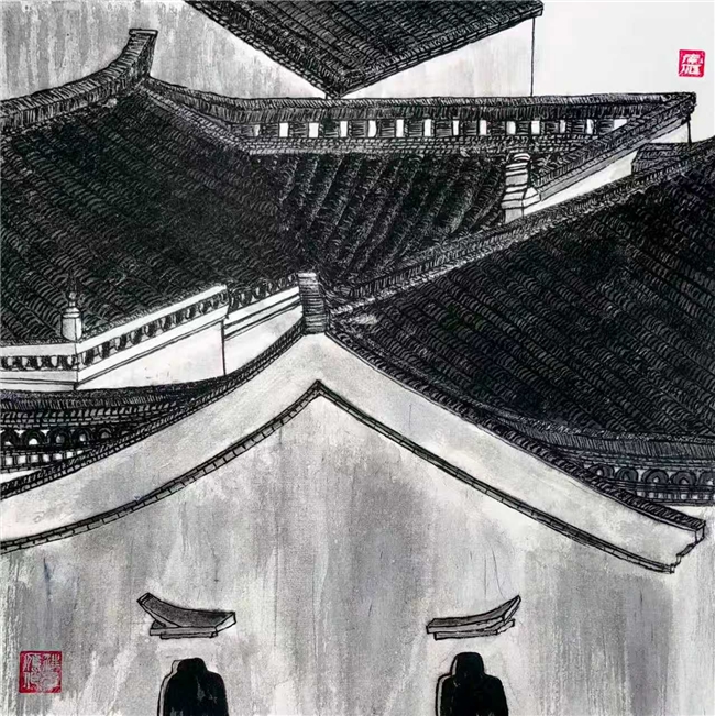 乡土题材是汪章雁艺术创作的核心板块,也是其情感寄托的重要载体。《故里冬日》《腊月柴门待归人》《祖乡村广场》《诗意徽乡》等经典作品中,他用平常笔墨勾勒出故乡的宁静与温情,冬日村舍、腊月柴门、祖乡广场,每一处景致都承载着浓烈乡愁,写绘的不只是故乡的外在风貌,更是骨血里的眷恋与牵挂。他用最平实的艺术语言,将乡村文化传承的执着和故土家园的热爱融入笔端,让作品充满情感温度,成为引发观者情感共鸣的泉源,也让中国水墨画在当代焕发出别样的生命力。